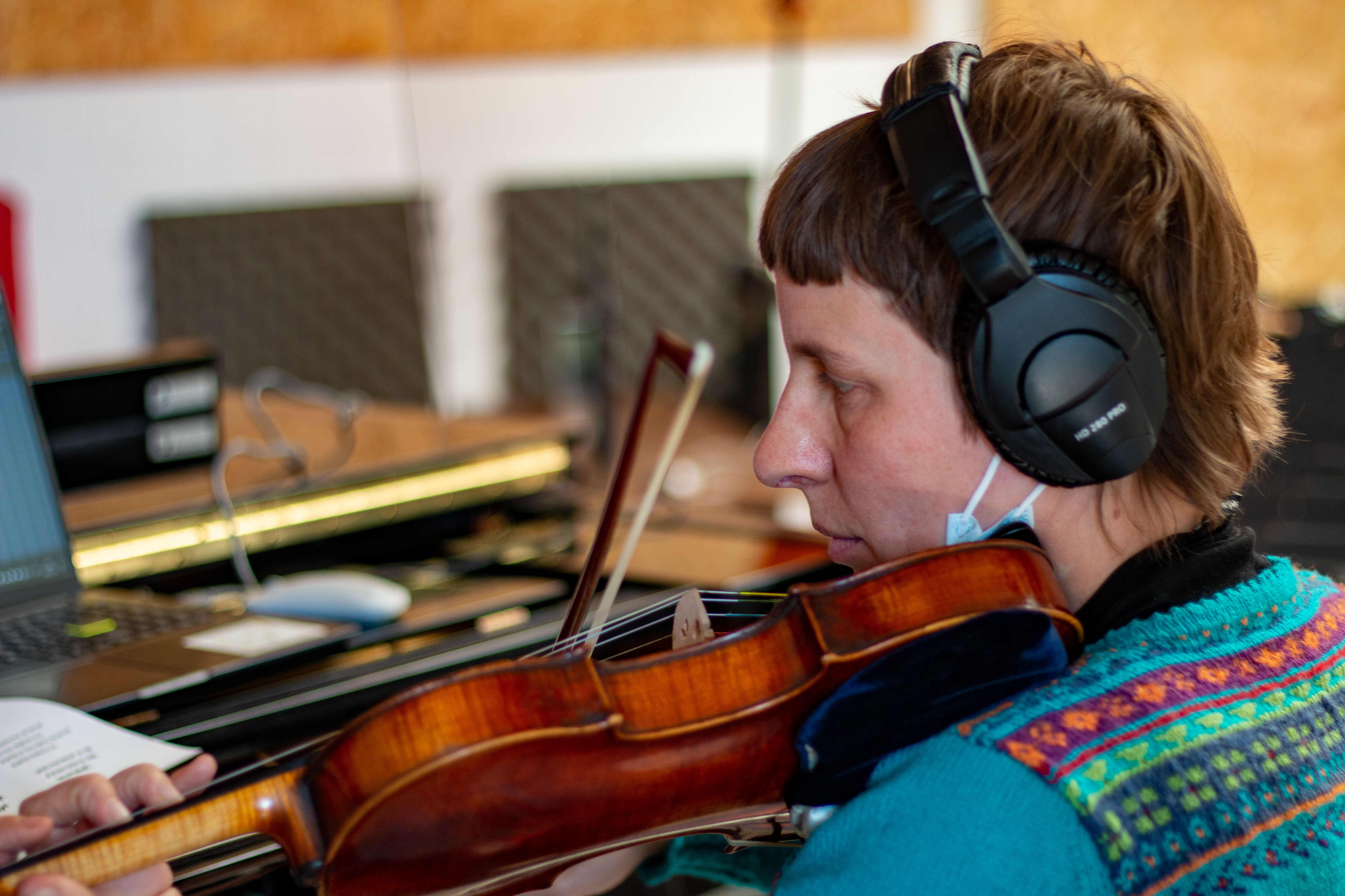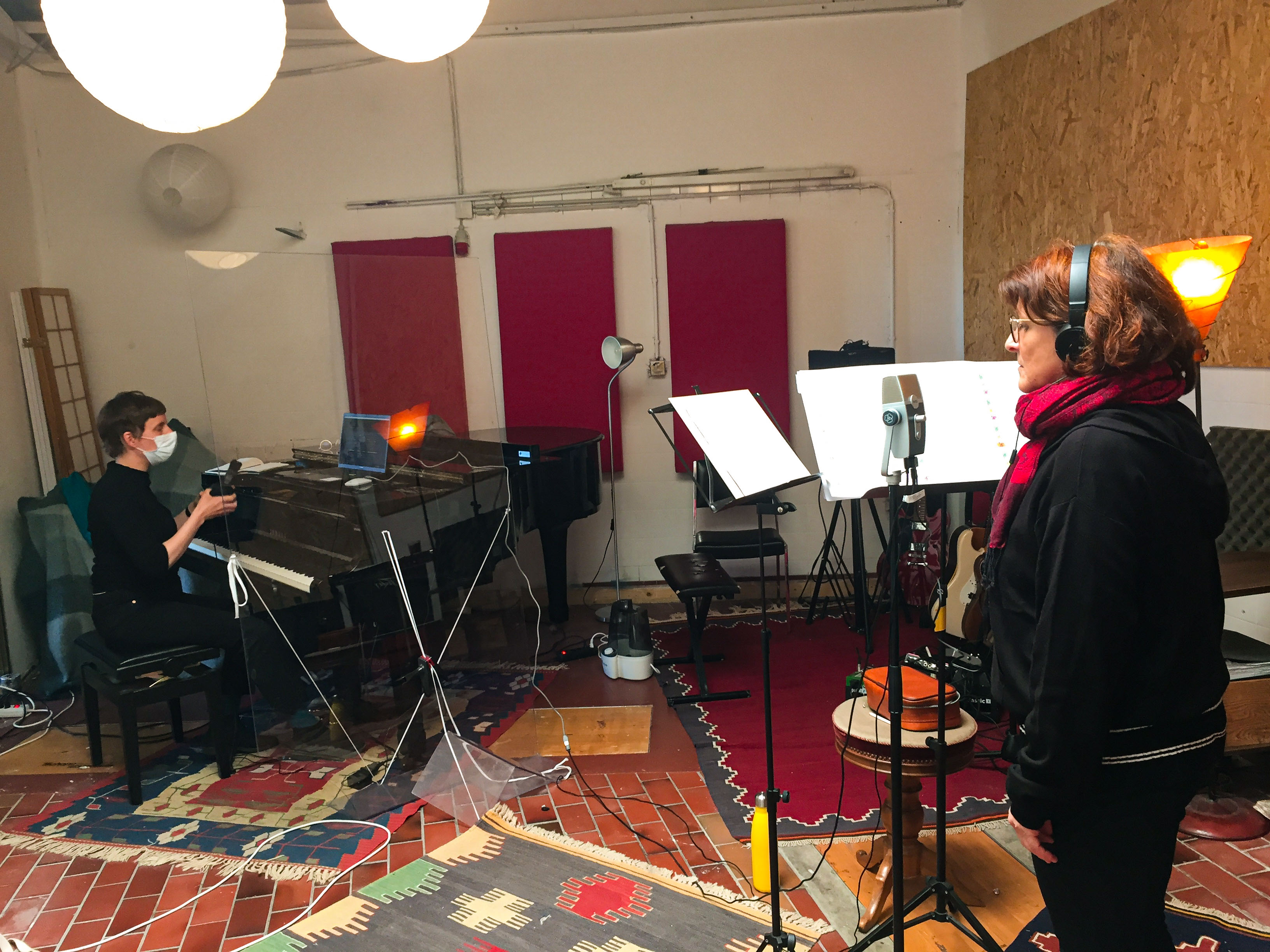An einem Wochenende im März 2021 traf eine Sängerin nach der anderen im Aufnahmestudio ein, um ihre Stimme aufzunehmen. Etwas ungewohnt war der straffe Zeitplan, aber dank des Zeitplan und gutem Schutzkonzept klappte alles reibungslos. Aus dem Kopfhörer kam die Masterstimme und jede Frau sang ihren Part dazu. Alleine mit dem Mikrofon und unter dem motivierenden Blick der Chorleitung waren die Aufnahmen von 16 Einzelstimmen nach zwei Tagen im Kasten.